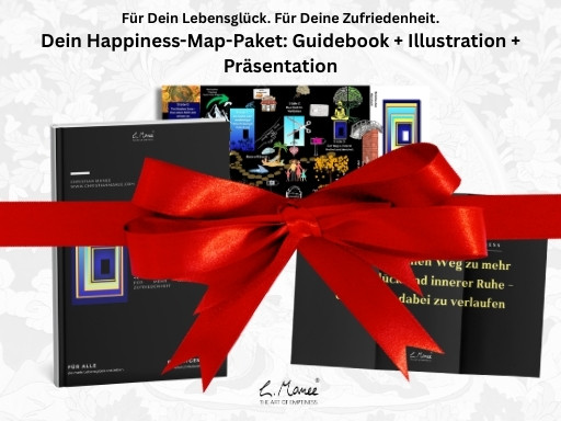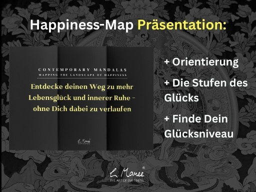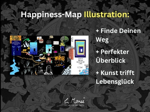 Die Happiness-Map verbindet diese zeitlose Weisheit mit moderner Wissenschaft und einem einzigartigen künstlerischen Ansatz. Sie schenkt dir Orientierungspunkte, die dir helfen, deinen eigenen Weg zu finden.